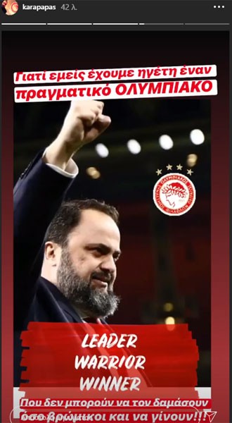 Το δικό του μήνυμα έστειλε μέσω social media και ο Κώστας Καραπαπάς για το μεγάλο χθεσινό διπλό του Ολυμπιακού στην Τούμπα! Ο Γ' Αντιπρόεδρος της ΠΑΕ Ολυμπιακός αναφέρθηκε στο βρώμικο πόλεμο που κάνουν στην ομάδα όλοι οι γνωστοί άγνωστοι, ενώ αναφέρθηκε και στον ηγέτη της ομάδας Βαγγέλη Μαρινάκη.